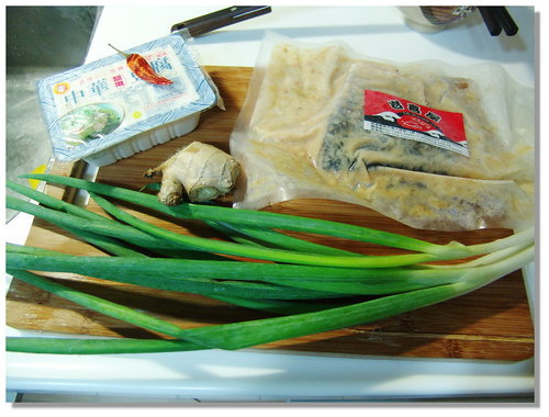 食材有:味噌鱸魚、豆腐、蔥、辣椒、薑
