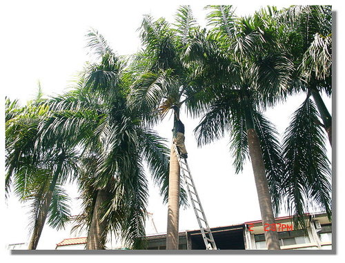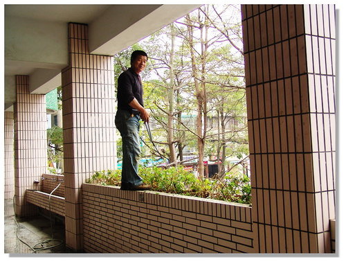 所以我就請彭老闆冒生命危險修剪高處的樹…