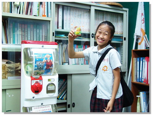 當總務主任,變 成科任 老師,我一樣有讓學生集點數換禮物,眾多禮物裡面一樣有一項是玩扭蛋機。且常常要學生送東送西來總務處,如果表現好且有禮貌的學生,也可以讓他扭一下。