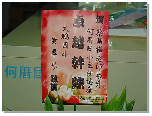主任儲訓六周回來, 八月二日(8/1是星期日)開始總務主任上工的日子,說也奇怪,到學校對面買早餐,還有遇到幾位愛媽,她們都說: 昌樺 老師恭喜升官啊!
