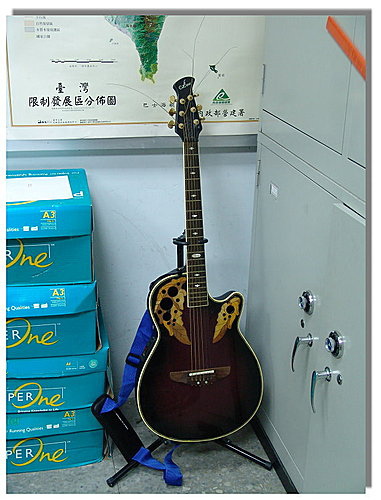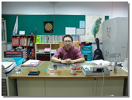 辦公桌一角放著吉他,隨時高歌一曲解壓,不過可能會被總務處同仁嚴重抗議吧