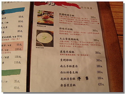 這是新疆野宴的菜單,有貴的料理,也有便宜的料理