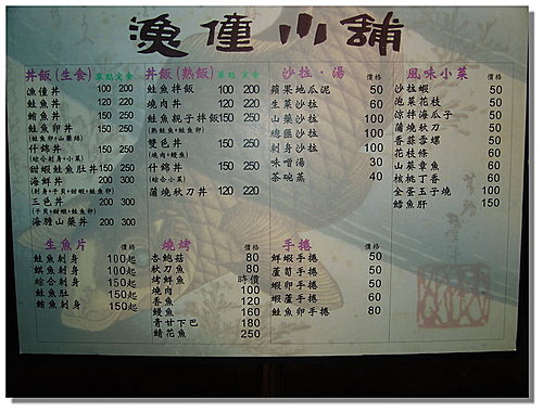 這是它的價目表,還蠻平價的喔