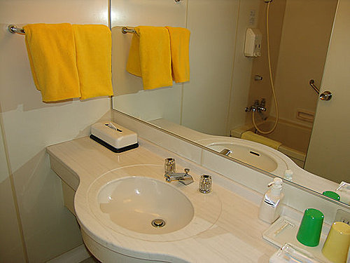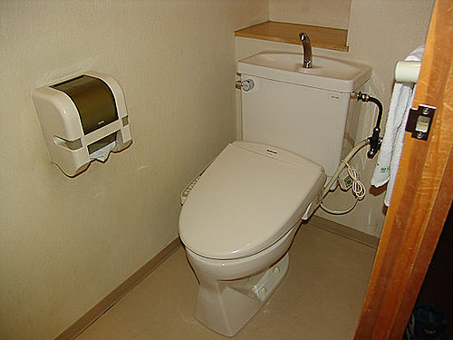 我覺得日本人也真奇怪,飯店馬桶獨立一間就算了,那地上是沒有排水孔耶!這樣怎麼清廁所呢?只能用擦的囉….