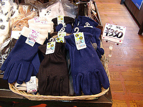 我這次出國是帶那種厚重的手套,還是GORE-TEX材質的,保暖度很夠,但是戴在手上,完全無法拍照,所以很多時後就甘脆不戴,但是這樣手非常冰凍,在這裡逛到一個店家在賣手套,這手套保暖度不好,但是軟多了,就給它買囉!才日幣350円,這樣的價錢當然是MIC囉!沒法度,湊合著用吧!