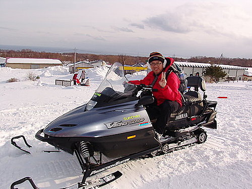 這也是我第一次騎雪上摩托車耶!它的油門不是用轉的,也不是用踏的,而是用「按」的喔!感覺還蠻好玩的…
