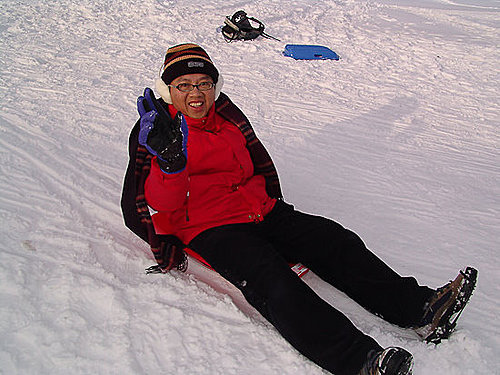 第二件事是我牽我爸在走的時後(因為地上積雪非常的滑),有一位美眉一直看我,然後主動開口跟我說「TAIWAN?」,我回答「YES」。她對我笑一笑,我實在是很想跟她哈拉二句,但是牽我老爸走路不方便把妹,只好殘念….