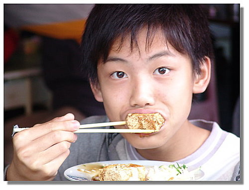 你們這三位小鬼,如果老師自己吃,叫你們站在旁邊看,你們可能會恨我一輩子吧!
