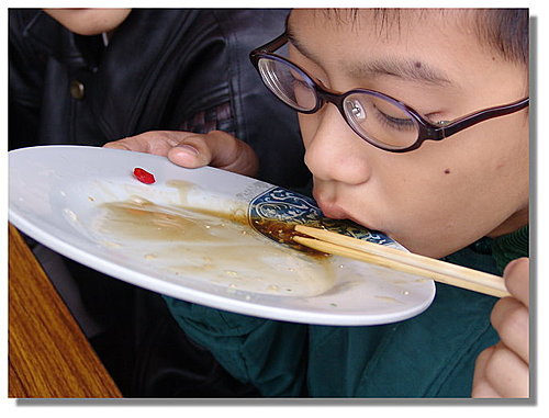 這位小弟,你也太誇張了吧!連醬汁也要….一掃而光