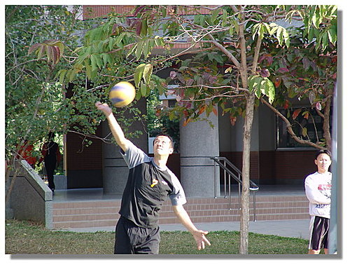 他可是台中市排球界的名人之一,當然也下去打社會組的囉!