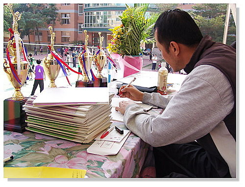 當然本校排球隊也有參加這個比賽,我也協助帶隊參加這比賽,所以星期四、五、六我都在比賽場地忙,沒有在學校,我是請公假在外面忙(連假日也去忙),竟然有些人講一些『閒言閒語』的五四三的話,真是給他奇蒙子不爽。