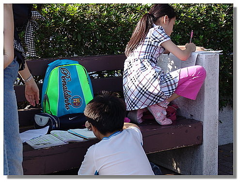這二位小朋友也太可憐了吧!蹲在這裡寫功課.....當老師的功課就不要出那麼多ㄇㄟ...