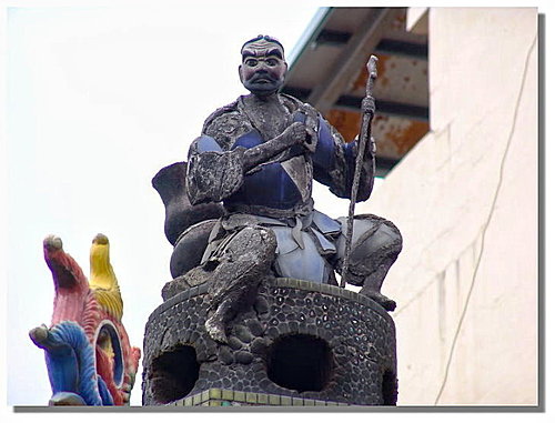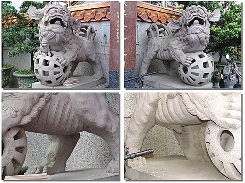 廟前面通常會有二隻大石獅,跟大家說明,如果你看的獅子是一隻開口一隻閉口的,那這間廟百分之九十九是可以列為古蹟的古廟了(我參訪了好幾間被列為古蹟的廟,發現這個現像)。