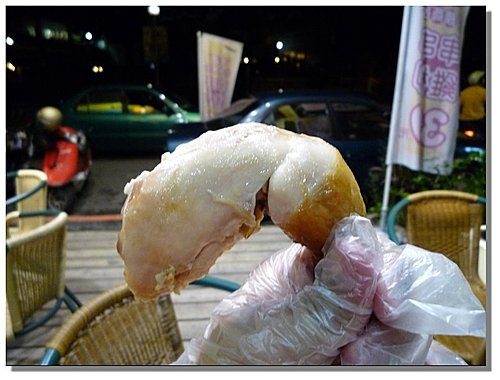吃起來,外皮竟然有種甜味,烤得外脆內軟,肉還蠻嫩的,鮮汁還在並未老掉,一整個讚啦!