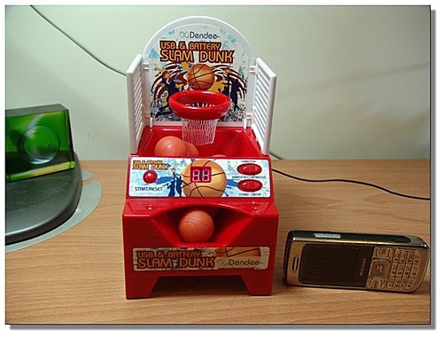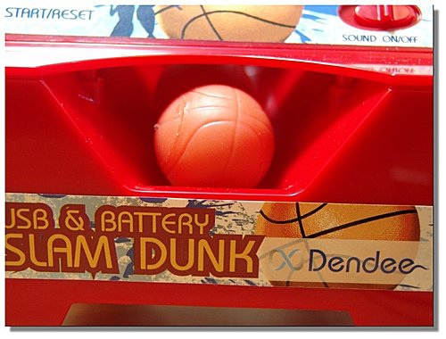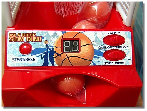 要投進還有點難耶!它籃框後有一個紅外線感應器,一球投進計2分,但有時會感應錯誤,多加個幾分…..