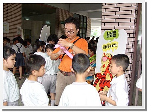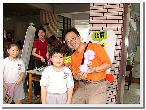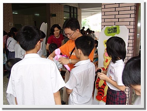 話說這次跳蚤市場,我已經沒帶班了,所以沒啥工作是我要支援的,但是愛心不落人後,我跟資源班的二位老師說那我到妳們攤位去折氣球義賣好了,就這樣,我就去義賣囉!