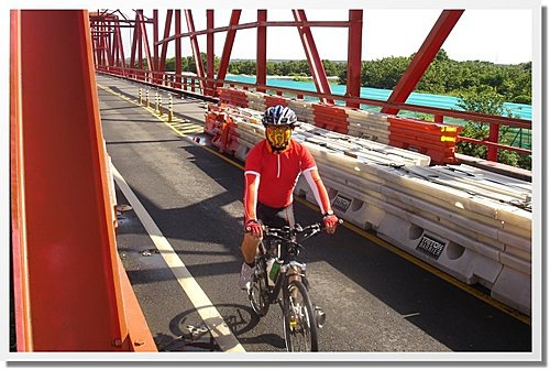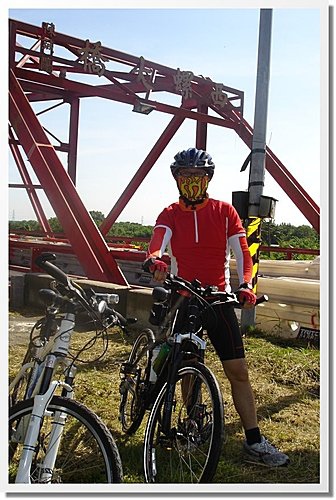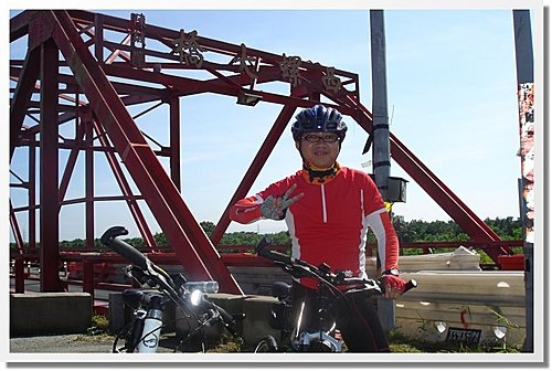 騎上西螺大橋,心裡踏實多了,因為西螺到了,騎到底時,主任跟楠崇已經吃完當地名產小吃又回到橋邊在那邊休息拍照,看到我時順便給我一張帥氣又無力的車上照吧!