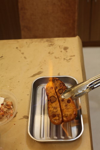 最後烤到表面起泡就可以了.....所以每面大約受熱90秒左右(翻3次)