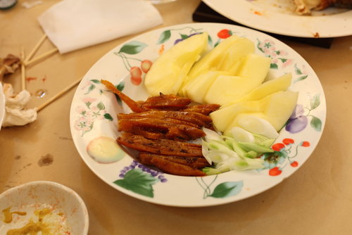 烏魚子搭配蘋果跟蒜來吃,大家直呼好吃啊!!