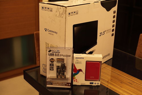 問題又來了,我電腦主機板不支援USB3.0,所以勢必要買擴充卡來插,這樣零零總總,我就買了新螢幕(Acer FHD2102)+威剛 CH11 1T 隨身硬碟+USB 3.0 2 Port 擴充卡!