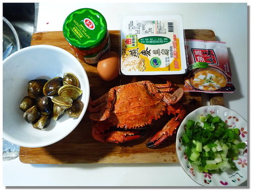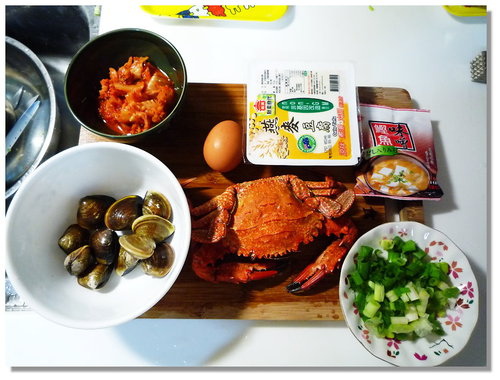 有石蟳、蛤蜊、味噌、蛋、豆腐、泡菜...
