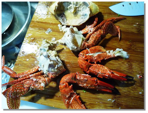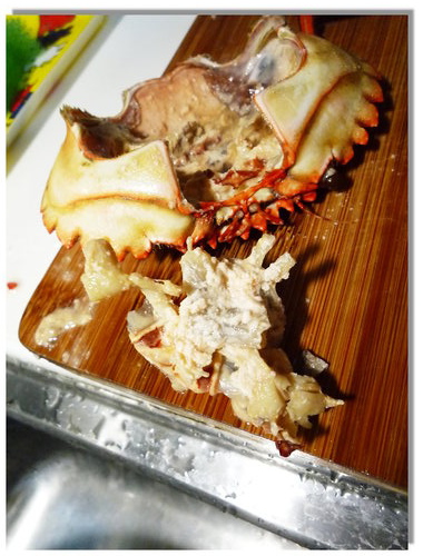 首先來處理石蟳(買來就是熟凍了,不是生的喔!)囉,我這石蟳是跟James買的(他們家的水產品質一級棒),但是這個James跟型男大主廚James是不同人啦