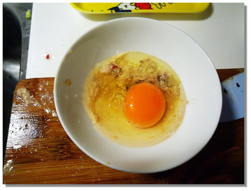在蟹膏裡加一顆蛋....