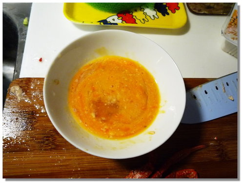 把蛋跟蟹膏攪伴均勻....放到旁邊備用...