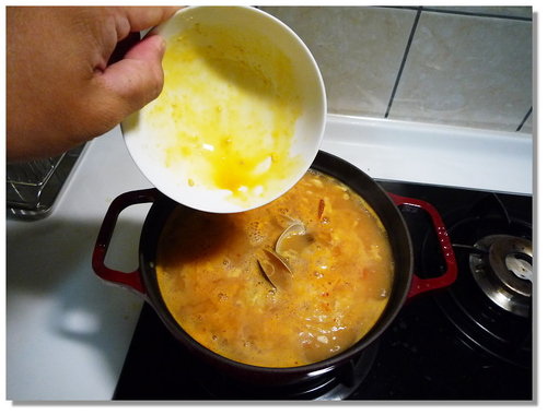 再把剛剛撈起來放在旁邊的蛤蜊放進去...
