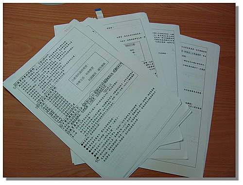 且重點來了,有一天關校長跟我說要拿東西給我,我還以為是要送我禮物,沒想到拿到一個信封袋,裡面裝的是她出的模擬試題,叫我們報考的幾位同仁要寫,一開始我還懶懶的不想寫,校長每次遇到總會「關心」一下我有沒有寫了...