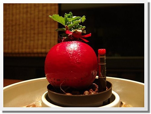 買完要結帳時,發現櫃台旁邊有賣一種紅色的小盆栽,問一下店員才知道那是菜頭,然後他們將它塗成紅色,因為過年要到了,取個吉祥之意紅菜頭、好彩頭。